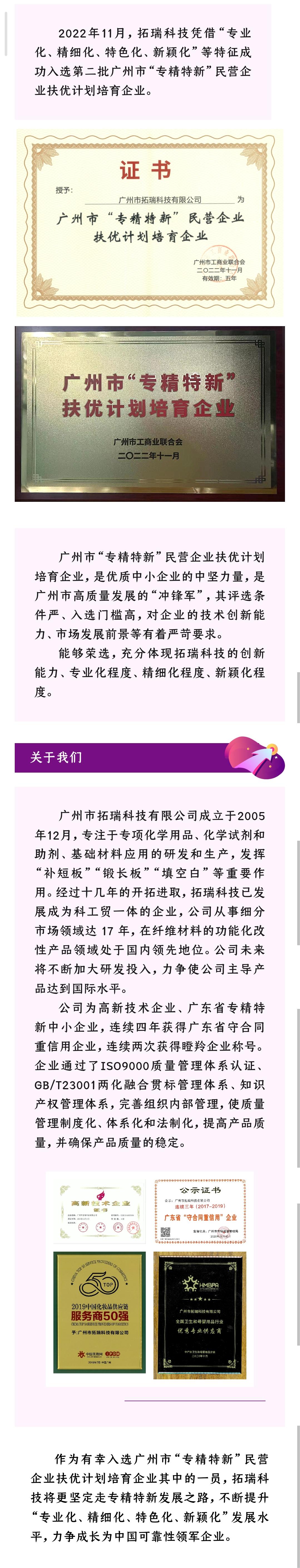 拓瑞科技入選廣州市“專(zhuān)精特新”民營(yíng)企業(yè)扶優(yōu)計(jì)劃培育企業(yè)